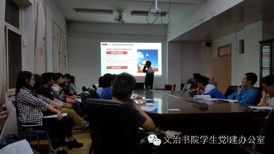 在活动开展过程中,文治书院学生第一党支部在组织委员王腾同志的引导下,无论党员、预备党员,还是积极分子均参与到组织生活会中,学习氛围浓厚,效果显著。其以党章党规制定的历史进程为起点,以新形势新任务对党的工作和党的建设提出的新要求为重心,最终落足于习总书记两会讲话所传达的精神,时达一小时的会议取得了卓越的成效,达到了预期的目标。学生第三党支部在组织生活会召开之前做了充足的准备工作,将党章及系列讲话印刷装订成册,提前分发给了与会的三十余名同志,做到了人手一册,使支部成员对“两学一做”教育活动有了一个充分的认识,对党章党规及习近平总书记系列重要讲话精神有了一个系统的学习,在会议中预备党员梁瑞华同志以PPT演绎的形式展开会议,取得了应有的效果。