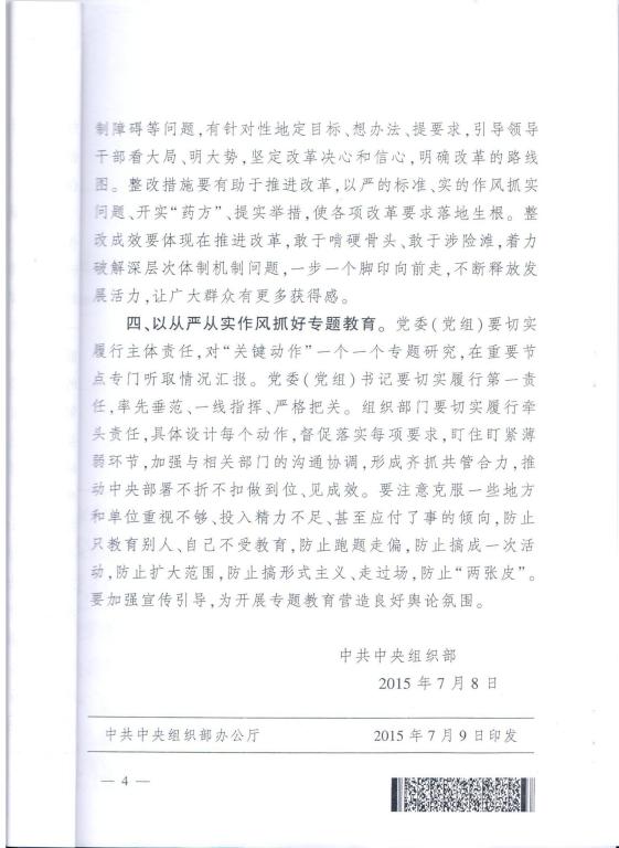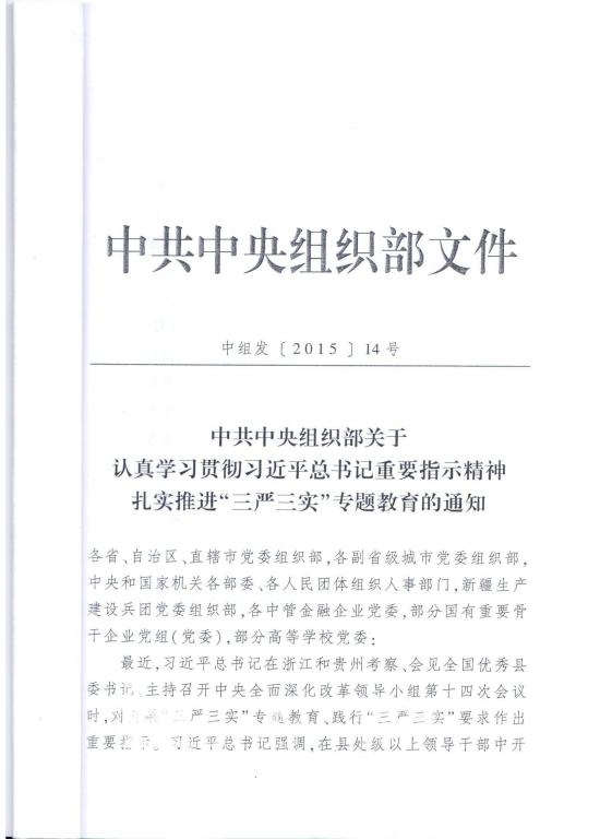 中共中央组织部《关于认真学习贯彻习近平总书记重要指示精神 扎实推进“三严三实”专题教育的通知》