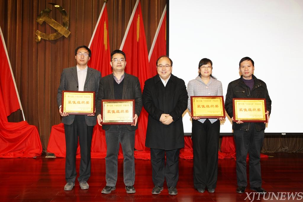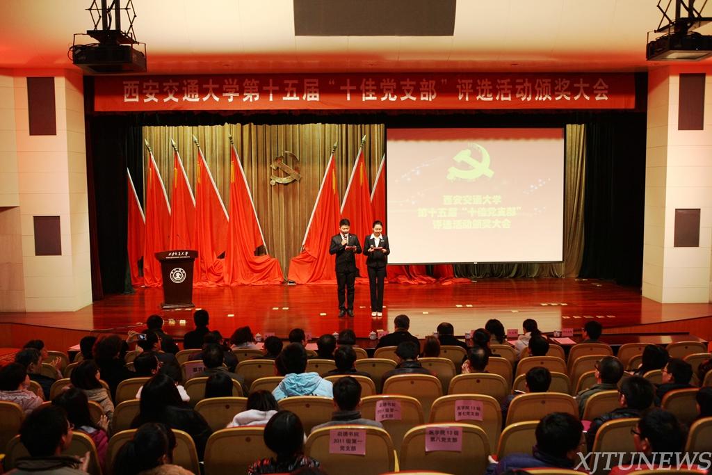 2014年12月31日下午,西安交通大学第十五届“十佳党支部”颁奖大会在主楼多功能报告厅举行,校党委书记张迈曾、副书记宫辉出席颁奖大会。纪委、组织部、宣传部、统战部、教务处、研究生院、学工部等部门负责人,各学院分党委副书记、书院党总支书记,学生辅导员及400余名学生党员代表参加颁奖大会。